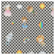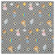 Caráteres de mágico de Oz tecido Checkered preto/branco. Os padrões incluem Dorothy, Toto, homem da lata, espantalho, leão Cowardly, Glinda a bons bruxa, arco-íris, nuvem, balão e guarda-chuva.