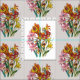 Ilustração botânica antiga dos gladióis em amarelo, rosa e vermelho