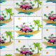 Um carrinho das caraíbas colorido da praia é o foco center deste design do tecido. Inspirará uma variedade infinita de projetos para lembrar um dos dias de verão felizes passados na praia ou nos tempos que cavorting nas ilhas.