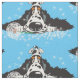 um cão de desenho animado, um paniel preto e branco segurando um flanco dandelion na boca... ilustração