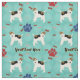 Estilo de desenho animado Wire Fox Terrier com uma dispersão de ossos e trilhas de pata. Este design é destinado ao azulejo sem falhas.