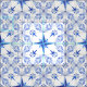 Este design foi criado dos trabalhos de arte tirados e pintados da mão da aguarela em branco e no azul com linhas do "grout" do tan claro. Inspirado por elementos náuticos da estrela norte de rosa de compasso e arranjado em um teste padrão com uma folha vining e um teste padrão de apoio floral estilizado. Há muitos padrões a escolher para da mistura e da harmonização para criar sua própria design de interiores particularizado ou decoração home. Copyright, Audrey Jeanne Roberts.
