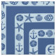 Este náutico, tecido do tema da casa de praia tem um olhar simples, moderno com um teste padrão chave grego geométrico. Seu design bonito, decorativo, estilizado inclui silhuetas dos escudos, da estrela do mar, das âncoras e dos dólares de areia, tudo na luz - azul em azul escuro. O design tem uma sensação elegante contudo minimalista da modificação.