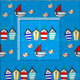 Tecido casa de praia divertida e barco marítimo