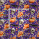 Um charmoso padrão de aquarela pintado à mão, com abóboras, crânios, morcegos e flores de outono em fundo roxo. Os tons roxos ousados dão-lhe uma sensação de vintagem, conforto — perfeita para tecido sazonal, coloração e decoração festiva.