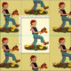 Reacenda as memórias da infância e passe-as avante aos jovens com este tecido que caracteriza um rapaz novo que monta seu cavalo do passatempo ao fingir ser o herói de sua própria história. Isto é ideal para que muitos projetos diferentes do artesanato iluminem os quartos ou as salas de jogos das crianças.