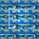 Cenário de inverno azul, escuro e claro com renas, sol pálido, decoração de Natal e design de repasse de neve