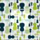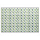 Cello modelava tecido em tons de azul e verde.