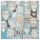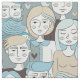 Tecido Centro Crowd Faces Blue/Beige ID494