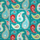 Mão bonito e brincalhão teste padrão floral tirado de paisley no azul vibrante da cerceta de turquesa, no vermelho e na luz - amarelo.