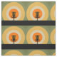 Este design gráfico apresenta anéis coloridos em torno de uma cesta de golfe e grama de disco de silhueta.