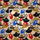 Um tecido russo ocidental apresenta chapéus e lenços de cowboy em tons sujos, espalhados por um pano de fundo de texturas de madeira e sotaques de corda para uma clássica vibe de cowboy. Este tecido divertido inclui chapéus de vaqueiro, cachecóis, chapéus de vaquinha, e pensamentos de um rodeio.