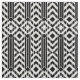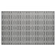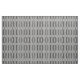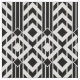 O tecido geométrico à moda caracteriza um teste padrão preto e branco extravagante com as vigas preto e branco separadas por listras pretas corajosas. Os blocos de listras terminam em uma fileira dos diamantes até que as repetições do design. As riscas brancas extensamente espaçadas dividem as vigas e os diamantes em seções.