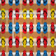 Nada diz verão como um par de chinelos fabulosos. Este padrão branco apresenta o calçado em tons primários de vermelho, azul e amarelo alinhado em faixas coloridas de areia pouco tecidas.