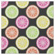 Fatias brilhantes de frutas de citros em uma variedade de cores divertidas constituem esse padrão gráfico tão refrescante para o verão. Os limões amarelos e cor-de-rosa, bem como os limões verdes e as laranjas, são representados em cruz nesta trabalho de arte simples e moderna.