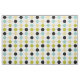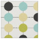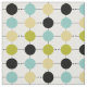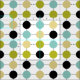 Esse tecido colorido moderno apresenta círculos azul-aqua, verde-abacado, amarelo e preto em uma grade em preto. Adicione esse pouco de diversão ao seu projeto de costura!
