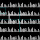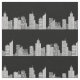 Um desenho de uma linha do horizonte da cidade forma listras pálidas ininterruptas contra um céu noturno preto. Os prédios e arranha-céus são desenhados em branco e preto translúcido, então se você mudar a cor de fundo, a cor da cidade mudará para complementá-la. Esse seria um bom padrão de colcha, máscaras e outros projetos de artesanato. A cidade poderia ser cortada em faixas para fronteiras.