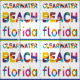 Tecido Clearwater Beach, Flórida. Padrão de texto colorid