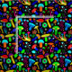Tecido cogumelos psicodélicos retrorais vibrantes florais