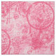 Este tecido inspirado em steampunk é impresso com um padrão de colagem de diagramas de vintage de relógio e engrenagens em um esquema de cor rosa.