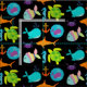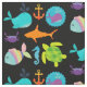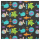 Os miúdos do tecido amarão, caracterizam um fundo preto com as criaturas do mar que incluem uma baleia azul, baleia do bebê de peixes roxos, listrados, do cavalo de mar azul, da tartaruga de mar verde, do caranguejo roxo, do tubarão alaranjado, e de uma âncora da laranja e do ouro! Os miúdos que amam o oceano e as criaturas que vivem lá amarão este tecido do impressão do divertimento!