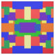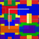 Este tecido colorido caracteriza um design da edredão de retalhos em cores do arco-íris com um olhar textured.