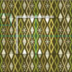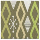 Um padrão artístico retrô dos anos 50 com diamantes ocos geométricos e estrelas do estilo da era atômica. As cores múltiplas incluem amarelo-esverdeado, verde-chartreuse, bronzeado e bege.