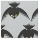 Este tecido artesanato incrível é perfeito para todos os seus projetos de artesanato. O design apresenta uma imagem de estilo de desenho animado de um corvo. O corvo é preto com olhos amarelos e tem as asas esticadas. O fundo é uma cinza pálida.