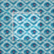 Tecido com padrão de ikat azul vintage. Tecido com padrão no estilo Boho. padrão dos olhos Abstrato pavão