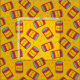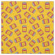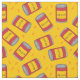 Tecido amarelo divertido, com formato de polpa, latas vermelhas de feijão assado