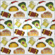 design de impressão de tecido apresenta uma ilustração original de comidas mexicanas clássicas, incluindo chimichanga, coquetel margarita, pimenta vermelha, abacate, taco de concha de duro e enchiladas de feijão preto. Excelente para Cinco de Mayo ou para seu alimento ou fã favorito de Tex Mex ou cozinha mexicana. Esta design mexicana também está disponível em outros produtos. Não vê o que está procurando? Precisa de ajuda para a personalização? Entre em contato com este designer para criar algo só para você.