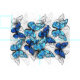 Composição vertical de borboletas de morfo realistas, azuis e brancas sobre fundo texturizado de cinzas. Borboleta azul Morpho.