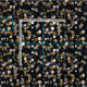 Um padrão de pontos de confete aleatórios em um pêssego pastel, marrom-mapa e paleta de cinzas, com brilho dourado sobre fundo escuro.