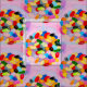 Arte original aquarela de doce branco colorido. Cores cor-de-rosa. Doces nojentos.