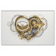 Cardíaco mecânico, volumétrico e steampunk com manômetros de pressão, de aço e de ouro sobre fundo branco. Estilo Steampunk.