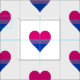 Tecido com corações design em cores de bissexualidade; faixas cor-de-rosa, roxo e azuis com bandeira do orgulho bi, design do orgulho bi-arco-íris em fundo branco