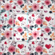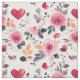 Uma nova design, moderna e romântica, de rosas e corações cor-de-rosa com folhas florais. Um tecido adorável para celebrar o amor e o dia de os namorados.