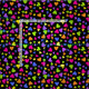 Um teste padrão de corações lanç em cores cor-de-rosa, alaranjadas, amarelas, verdes, azuis e roxas em um fundo preto.
