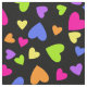 Tecido Corações multicoloridos no preto