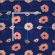 Belo tecido com padrão de flores de anêmona rosa-coral em azul-marinho