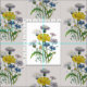 Ilustração botânica antiga de flores-do-mar em azul, amarelo e branco.