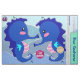 Corte e mastigação: padrão de cavalo de mar azul para um travesseiro de pelúcia a partir de um quarto de gordura. O padrão e as instruções estão impressos no tecido. Simplesmente corta-o e costura-o juntos. Este é um projeto de costura fácil e divertido. Materiais adicionais necessários: enchimento, tesoura, agulha, rosca, pinos, fita e máquina de costura (facultativo).