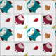 O tecido design adorável apresenta duas corujas e folhas em lindas cores de outono.