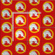"Gules, um golfinho embrenhou um inocente através de uma anulação ou." Padrão de amantes do crachá popular da Barônia do Extremo Oeste na Sociedade para o Anacronismo Criativo.