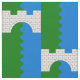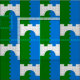 "Per pale wavy vert and azure, uma ponte de uma envergadura por todo o argent." Padrão de amante do crachá popular para o Império das Pontes Velhas na Sociedade de Anacronismo Criativo.