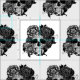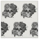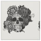 Tecido Crânio de açúcar com flores em preto e branco