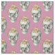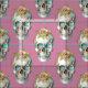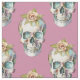 Crânio de aquarela e padrão de flores em fundo rosa.