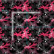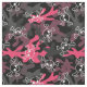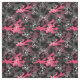 tecido de camuflagem legal e feminino em campos de cor-de-rosa, carvão e preto e um padrão de contornos de crânio em branco.