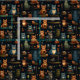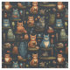 Tecido Create Your Own Kooky Wild Owls Rabbits Cats Black