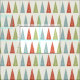 Este tecido padronizado é perfeito para fazer presentes de Natal e decoração doméstica. Este material tem ilustrações elegantes e modernas das árvores de Natal em vermelho, verde-claro e azul-claro contra um fundo de cor creme-claro.
